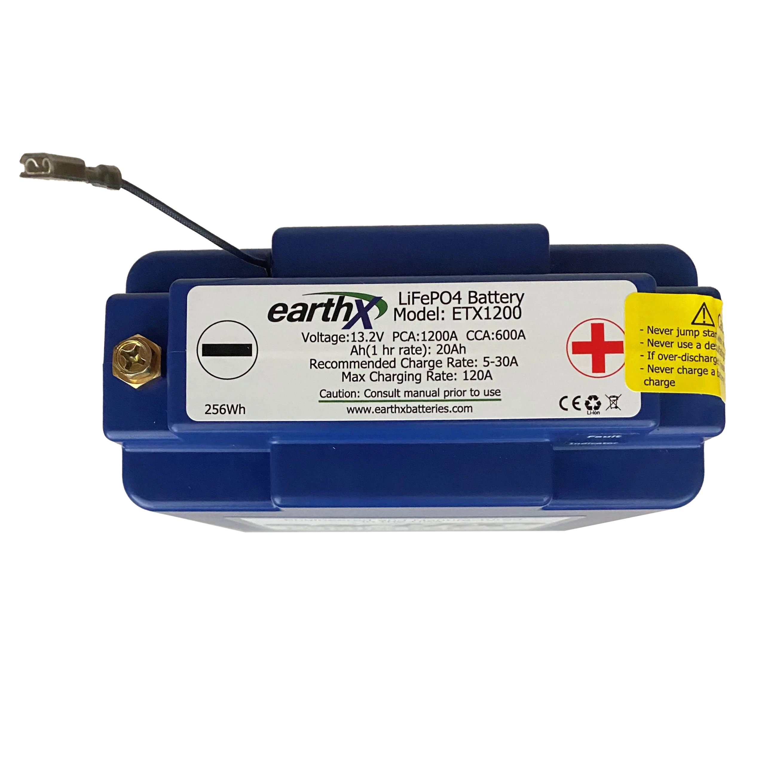 A battery management system (BMS) fully protects this lithium starter battery. The BMS protects the cell’s from over discharge, over charge, short circuit, temperature, in addition to cell balancing, to ensure charge levels are equal. Additionally, ETX-Hundred Series aircraft batteries have redundant electronic circuits and battery fault indication. The fault indicator can be connected into your EFIS or wired to a 12volt LED light on your control panel to alert you to the state of charge and state of health of the battery. (Please see manual for details)