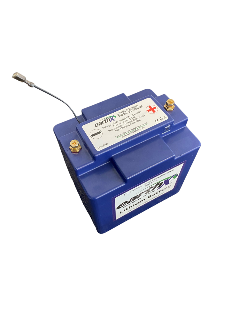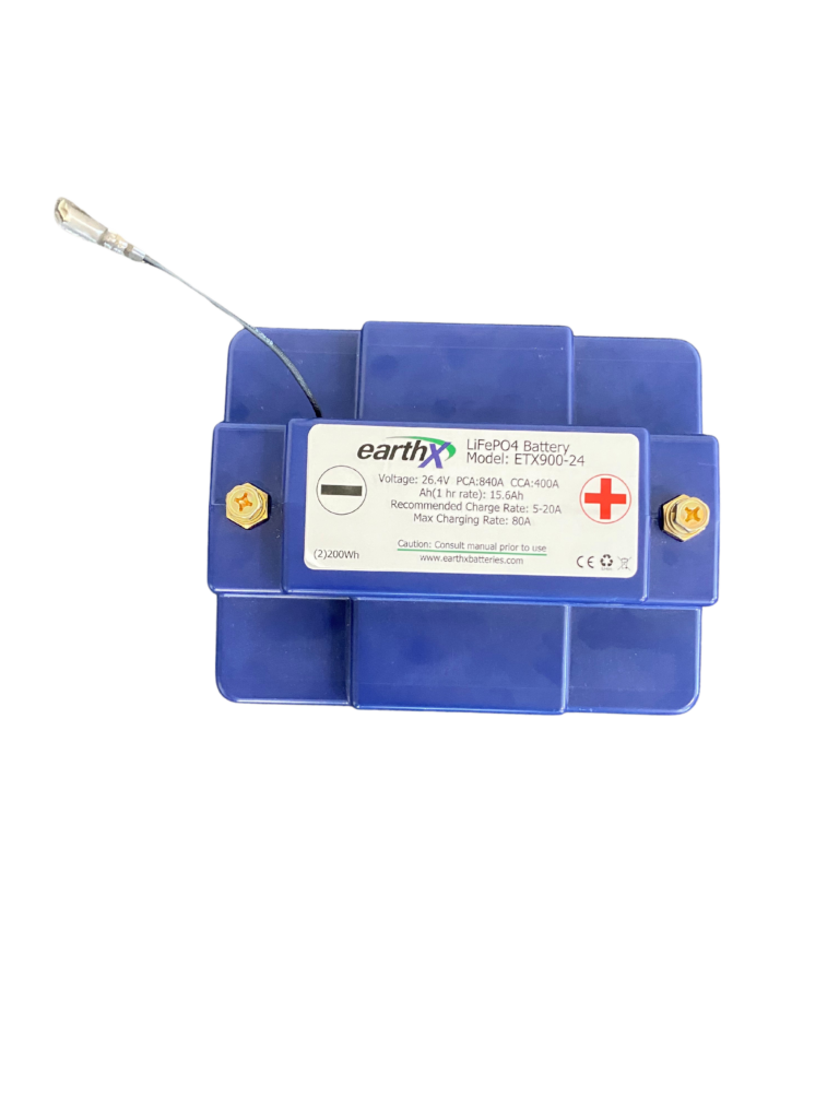 A battery management system (BMS) fully protects this lithium starter battery. The BMS protects the cell’s from over discharge, over charge, short circuit, temperature, in addition to cell balancing, to ensure charge levels are equal. Additionally, ETX-Hundred Series aircraft batteries have redundant electronic circuits and battery fault indication. The fault indicator can be connected into your EFIS or wired to a 24volt LED light on your control panel to alert you to the state of charge and state of health of the battery. (Please see manual for details)