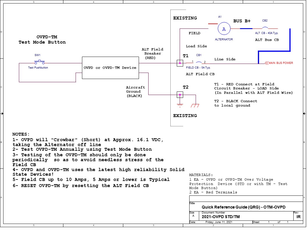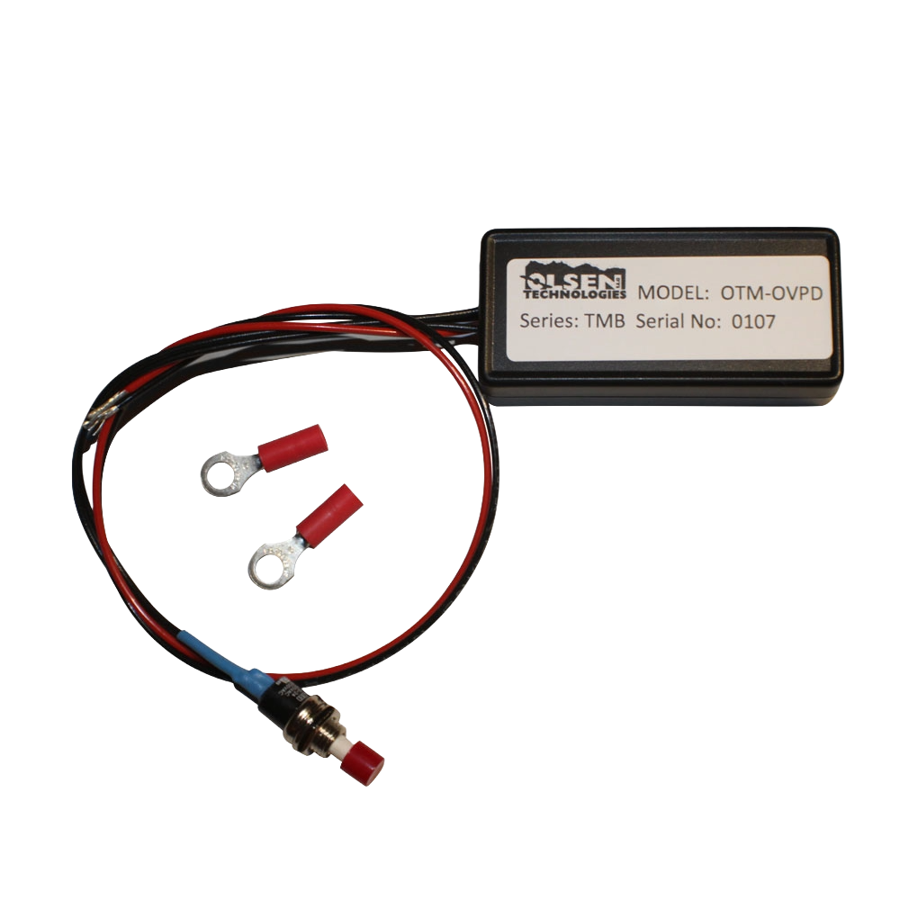 This device is designed to “crowbar” the Circuit Breaker by applying a short circuit electronically and “pop” the current Alternator Field Circuit Breaker when voltage is over 16 Volts to protect all of your electronics in your vehicle. The OVPD-TM model features a test mode button which can be used to check the functionality of the unit.