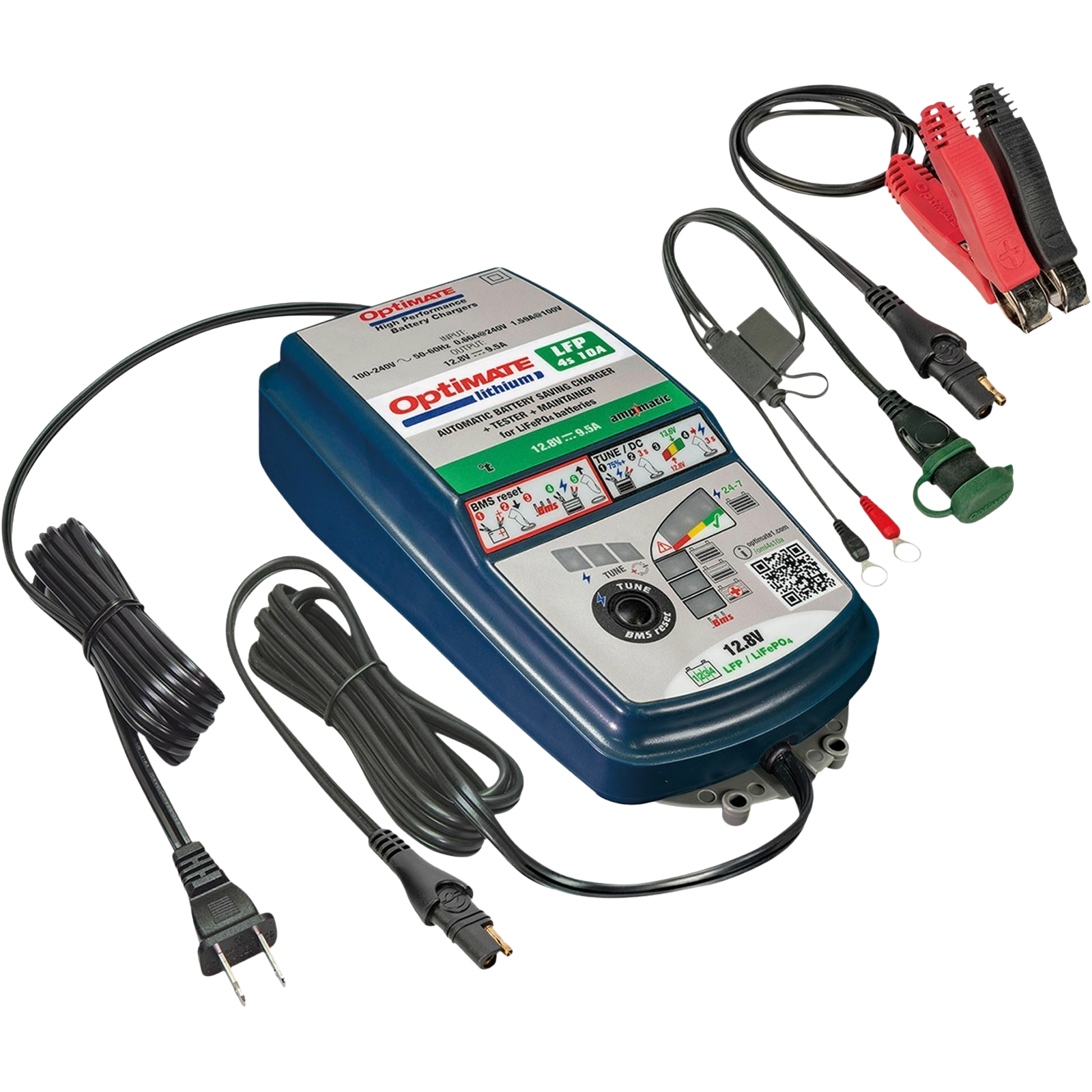 - Ampmatic : Microprocessor adjusts current to ideal LiFePO4 charge curve to match battery size / condition, for fastest and most complete charge.